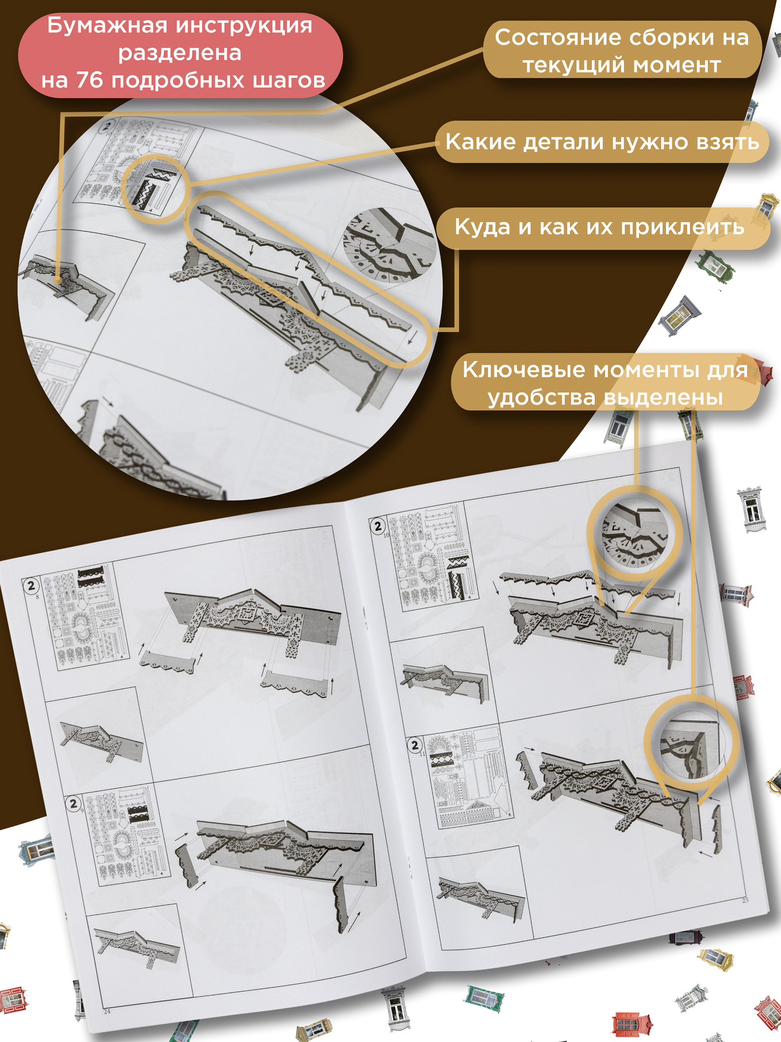 В наборе всё необходимое для сборки и покраски: детали, краски, кисточки, клей, оргстекло, ткань, наждачная бумага, инструкция по сборке.